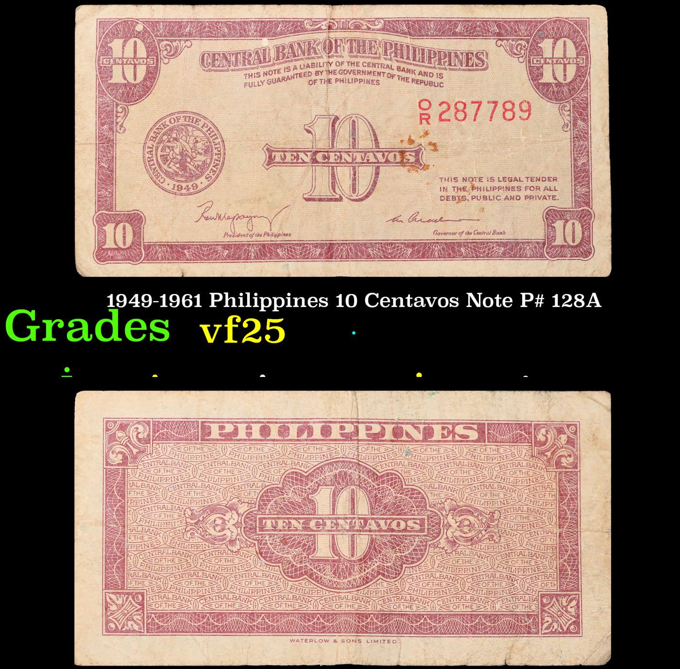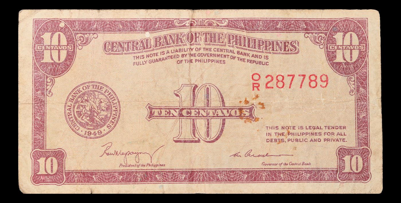 1949-1961 Philippines 10 Centavos Note P# 128A Grades vf+.