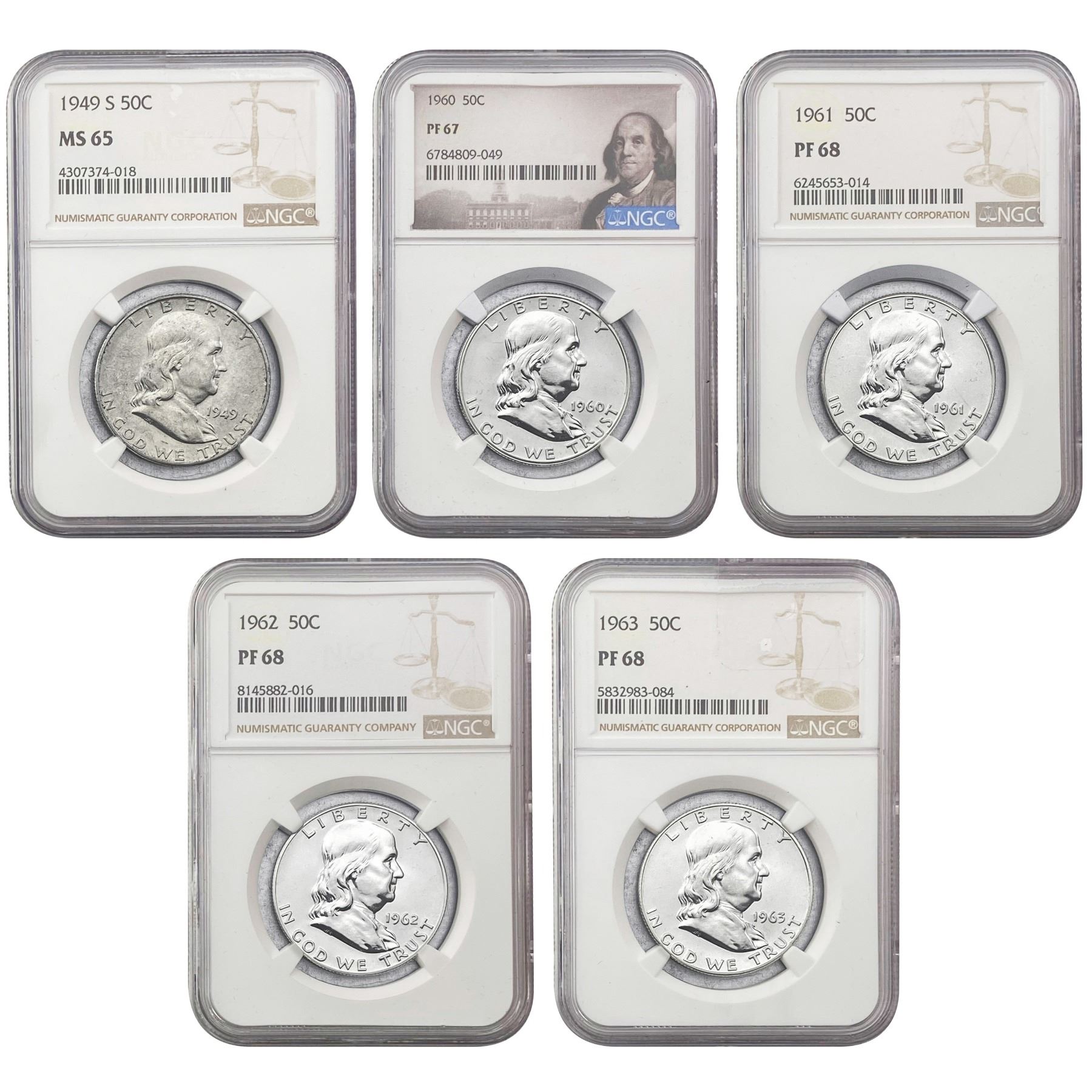 1949-1963 [5] Franklin Half Dollar NGC PF/MS65-68