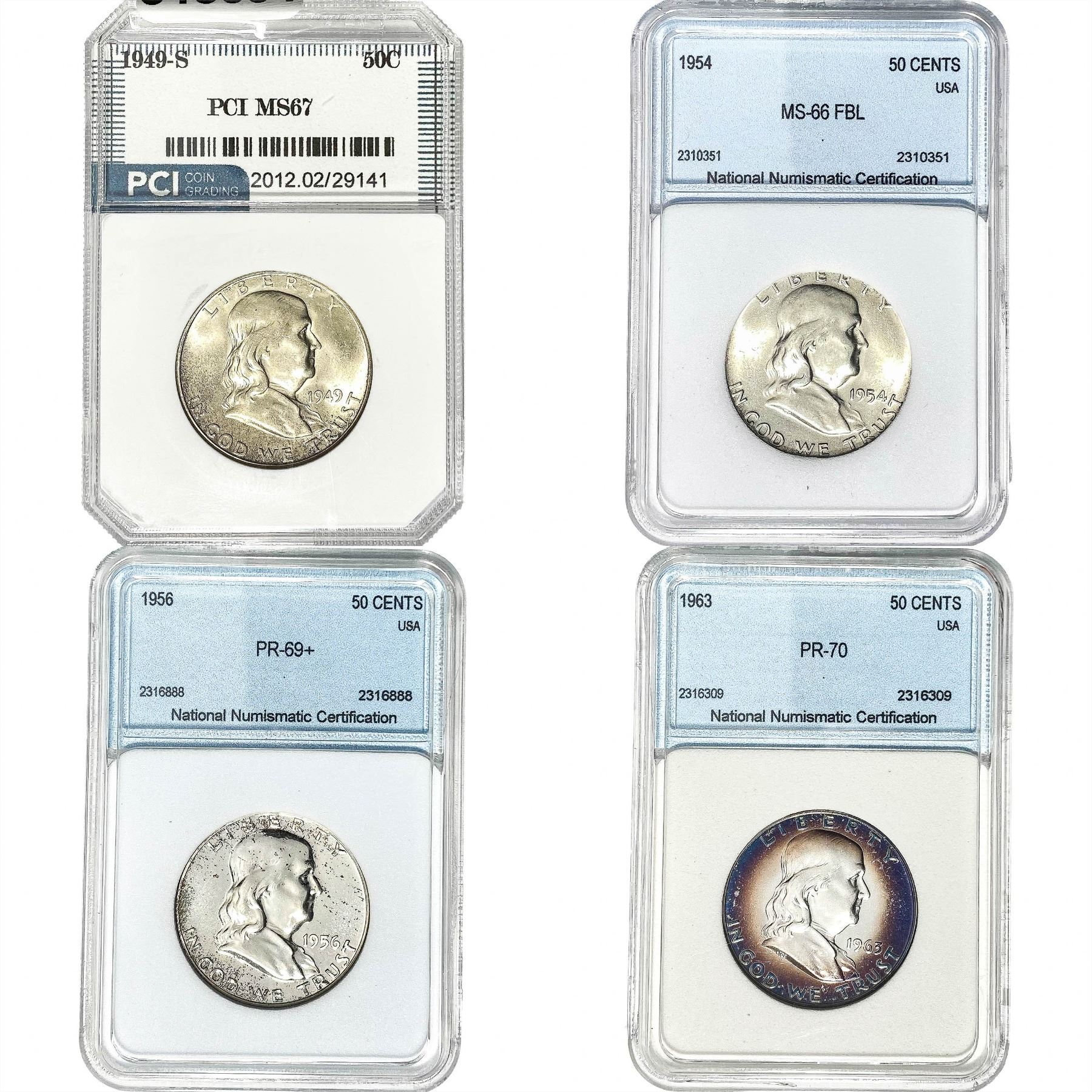 1949-1963 GEM BU/PROOF Franklin Half Dollar[4 Coins] PCI/NNC MS/PF66-70