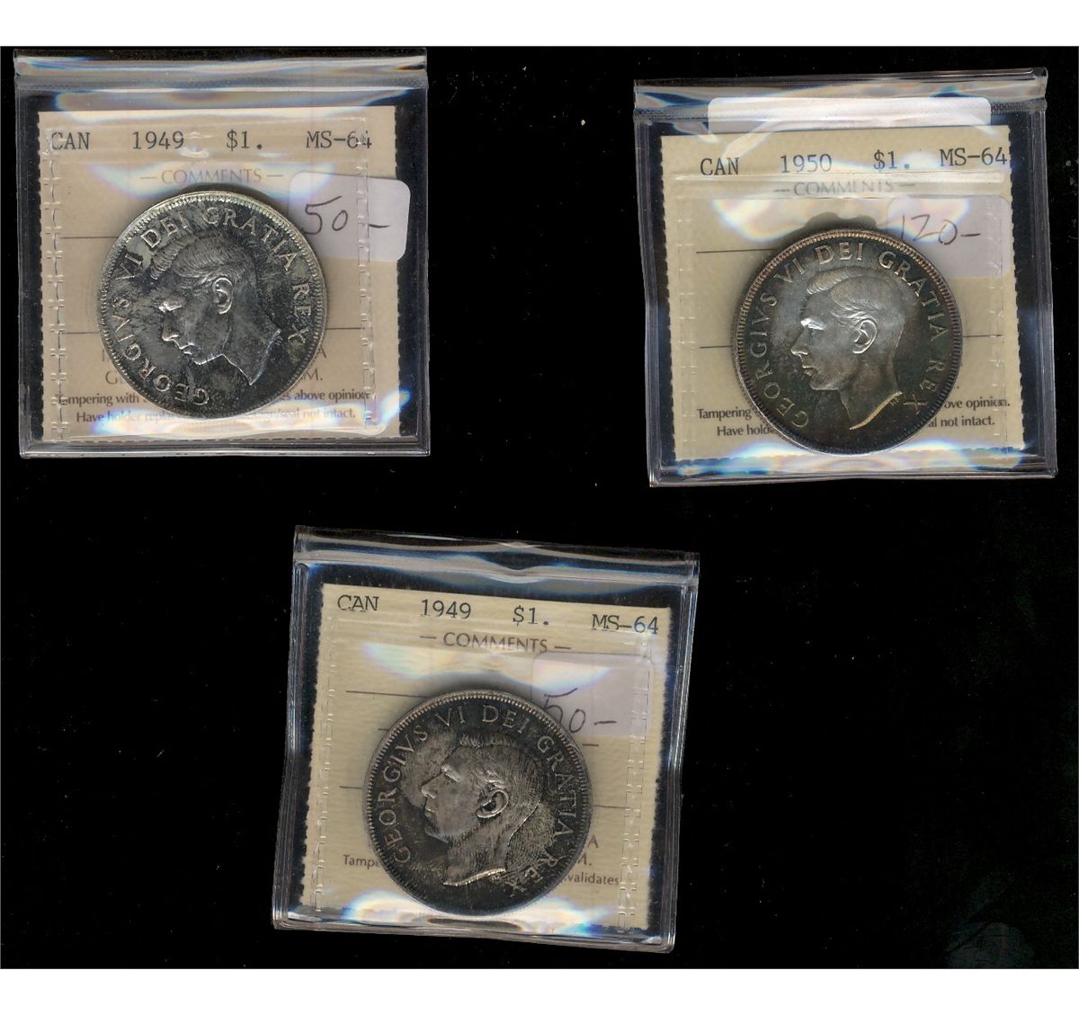 1949(2) $1 & 1950 ICCS MS64. Lot of 3 coins all with nice toning.