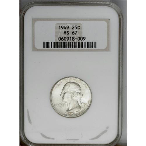 1949 25C MS67 NGC. NGC Census: (116/2). PCGS Populatio 1949[25C] MS67 NGC.