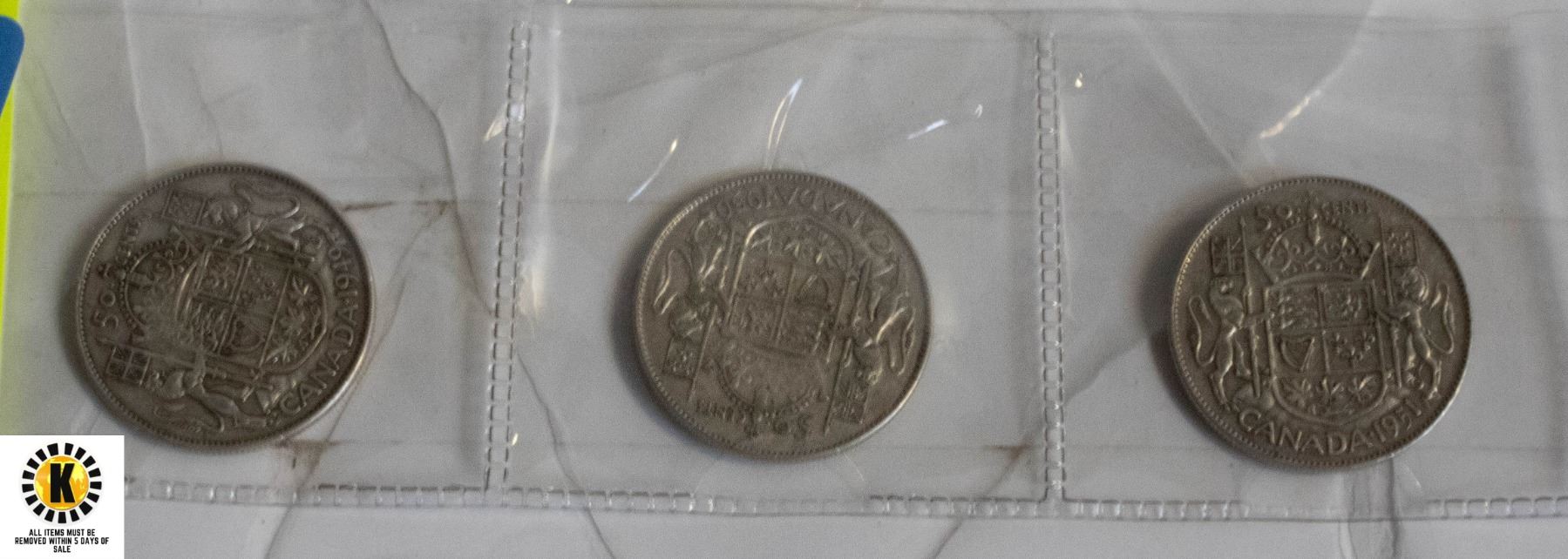 1949/50/51 CDN 50-CENT COINS LOT OF 3