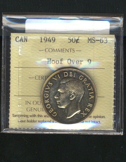 1949 50¢ Hoof over 9 ICCS MS63. Light golden hue.