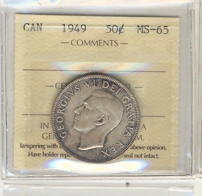 1949 50¢ ICCS MS65. Lovely gem tones.