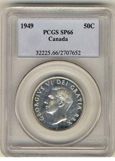 1949 50¢ PCGS SP66 Brilliant with nice reflective surfaces.