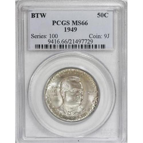 <B>1949 50C Booker T. Washington MS66 PCGS.</B></I> PCGS Population (182/2). NGC Census: (190/14). Mintage: 6,004. Numismedia Wsl. Price for NGC/PCGS coin in MS66: $292. (#9416)<BR><BR><b>Shipping:</b> Coins & Currency (<a target="_blank" href="http://www.heritageauctions.com/common/shipping.php">view shipping information</a>)