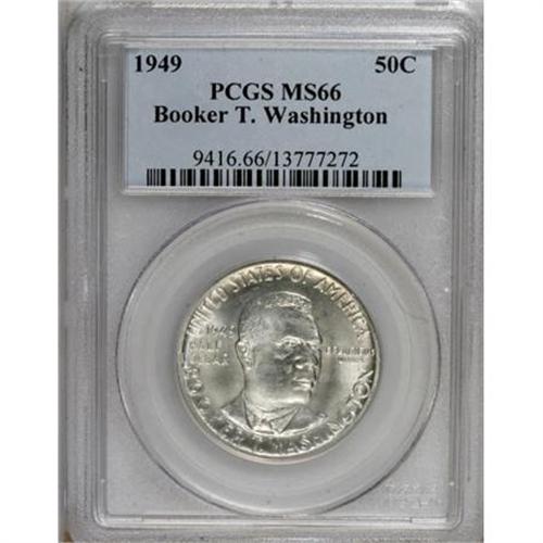 <B>1949 50C Booker T. Washington MS66 PCGS.</B></I> PCGS Population (187/5). NGC Census: (195/15). Mintage: 6,004. Numismedia Wsl. Price for NGC/PCGS coin in MS66: $292. (#9416)<BR><BR><b>Shipping:</b> Coins & Currency (<a target="_blank" href="http://www.heritageauctions.com/common/shipping.php">view shipping information</a>)