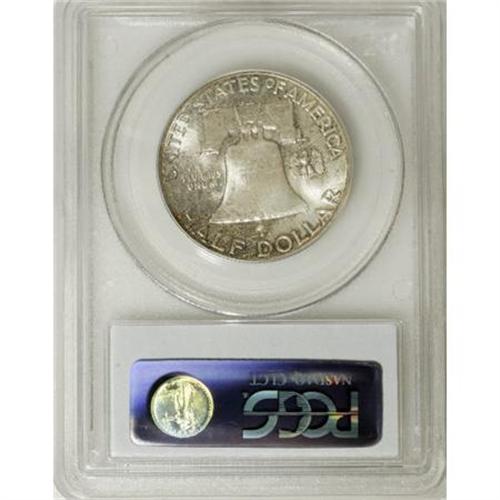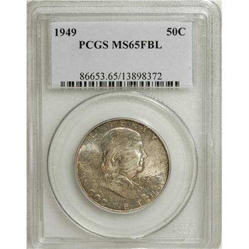 <B>1949 50C MS65 Full Bell Lines PCGS.</B></I> Swirls of deep, mottled patina blanket the obverse, and lighter speckled toning decorates the reverse border. Satiny and well struck with just two or three small marks on each side. <BR><BR><b>Shipping:</b> Coins & Currency (<a target="_blank" href="http://www.heritageauctions.com/common/shipping.php">view shipping information</a>)