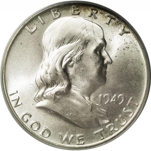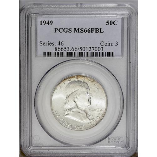 <B>1949<50C> MS66 Full Bell Lines PCGS.</B></I> Another incredibly scarce coin at the Premium Gem, Full Bell Lines level. The present example shows brilliant, essentially untoned surfaces with a couple of light-gold and russet areas. Scrutiny reveals no singularly mentionable abrasions. PCGS has graded none finer (3/06).<BR><I>From The Manna Collection.</B></I> <BR><BR><B>Important notice:</B> Heritage usually auctions material at the rate of 200-250 lots per hour. On some occasions eBay Live bid software or the Internet may not be able to keep up with the pace of the auction. We recommend placing a realistic absentee bid now as insurance to avoid disappointment. Occasionally the auctioneer may eliminate or reject an eBay Live bid, and the auctioneer may also reopen a lot after the close of the eBay live bidding (usually because we missed an audience bid), and may reject your bid even if it shows you as the winning bidder. By bidding via eBay Live, you agree that Heritage may award the lot to another bidder at its sole discretion under the circumstances described above or any other reasonable circumstances. Since eBay bids are not shown to us until we open the lot on the floor, we treat those bids just like floor bids. In most cases the floor responds before the eBay bid is presented to us, due to Internet lag time, so for consistency we have made it a policy that floor bids are always considered first over tie eBay live bids. Also please note that all Heritage lots purchased through eBay Live carry a 20% Buyer's Premium. Please make sure you read the Terms and Conditions before you bid. This lot is being auctioned in conjunction with a live floor auction by Heritage Galleries & Auctioneers. All final auction and invoice information will be supplied by Heritage Galleries & Auctioneers, and all other information should be considered preliminary. Lot:3075 <BR><BR><B>Winning Notification and Billing:</B> After the FINAL session in this auction is complete, Heritage will send e-mail and snail mail invoices. This process normally takes several days. All final auction and invoice information will be supplied by Heritage Galleries & Auctioneers, and all other information should be considered preliminary. <BR><BR>This auction will be conducted on a live auction floor and over the Internet through eBay Live. If you choose to place an absentee bid, please take a moment to <font color='#0000ff'><u><a href='http://pages.ebay.com/liveauctions/help/before/laabsentee.html'>learn how eBay Live absentee bidding works</a></u></font><font color='#000000'>