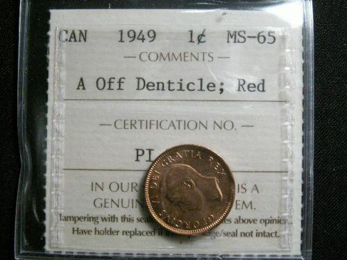 1949 "A" OFF dent 1¢ ICCS MS65 Red . A very flashy coin! Excellent strike and clean fields.