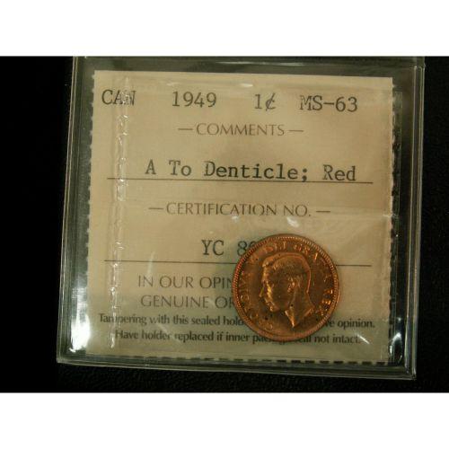1949 A to Denticle 1¢ ICCS MS-63 Red