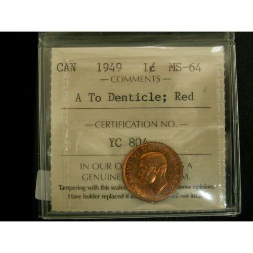 1949 A to Denticle 1¢ ICCS MS-64 Red,