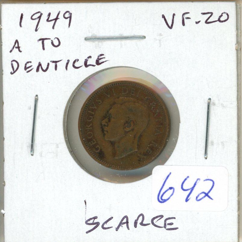 1949 A to Denticle Small Cent. VF-20. Scarce.