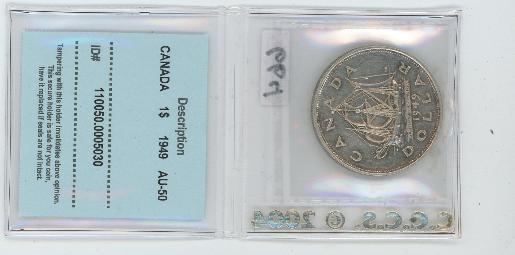 1949 - AU-50 CANADIAN SILVER DOLLAR