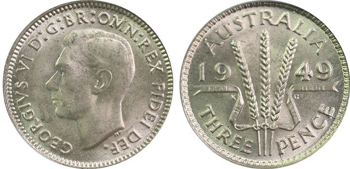 1949 Australian Threepence - PCGS MS 64