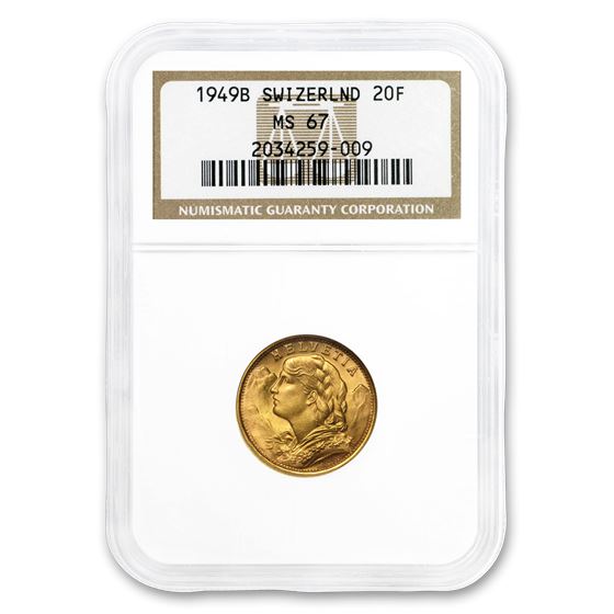 One piece 1949-B Switzerland Gold 20 Francs Helvetia MS-67 NGC