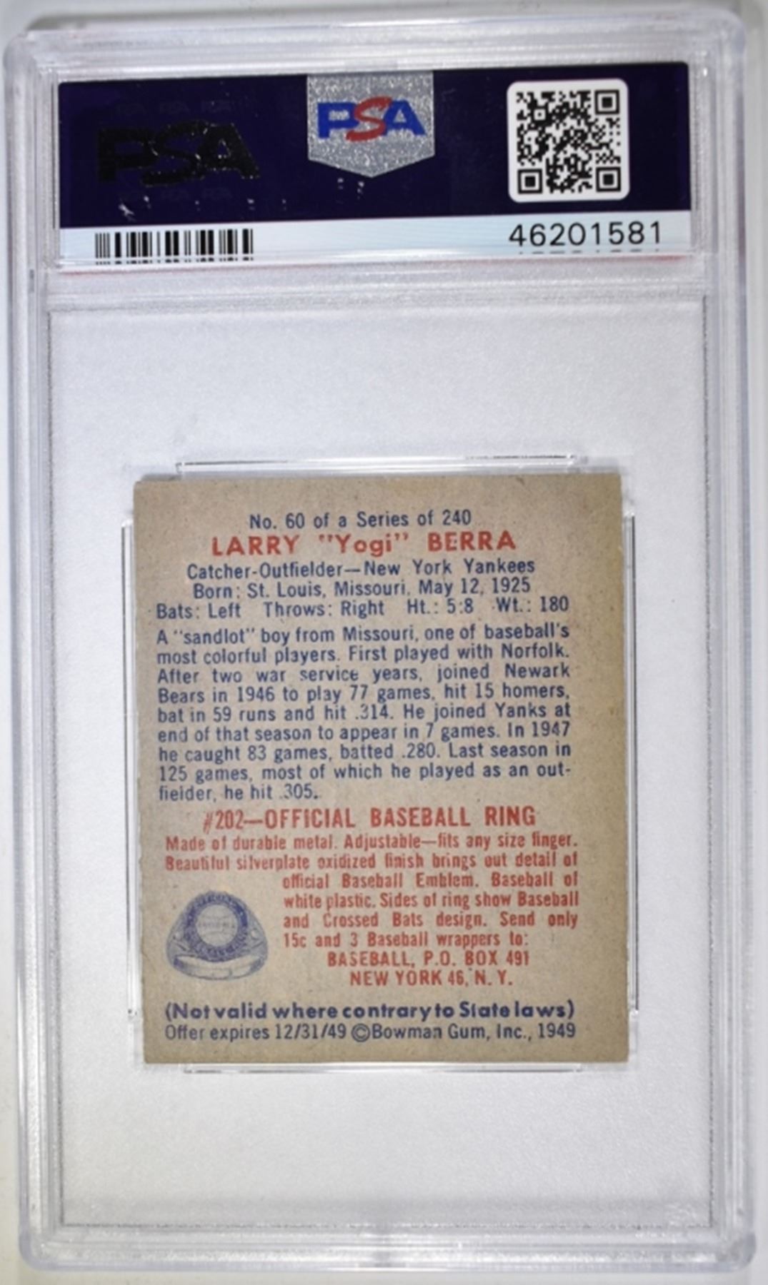 1949 BOWMAN #60 YOGI BERRA, PSA VG-EX+