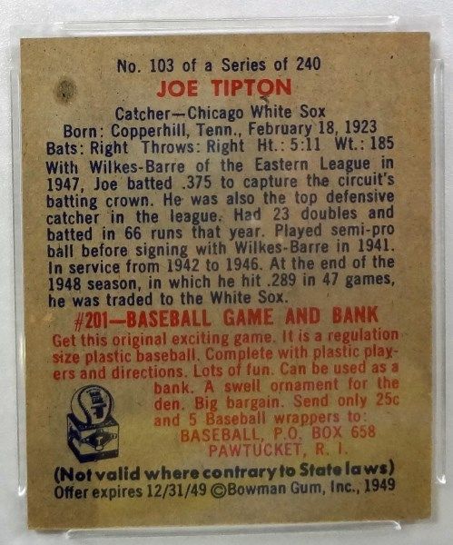 1949 Bowman #103 Joe Tipton PSA NM 7