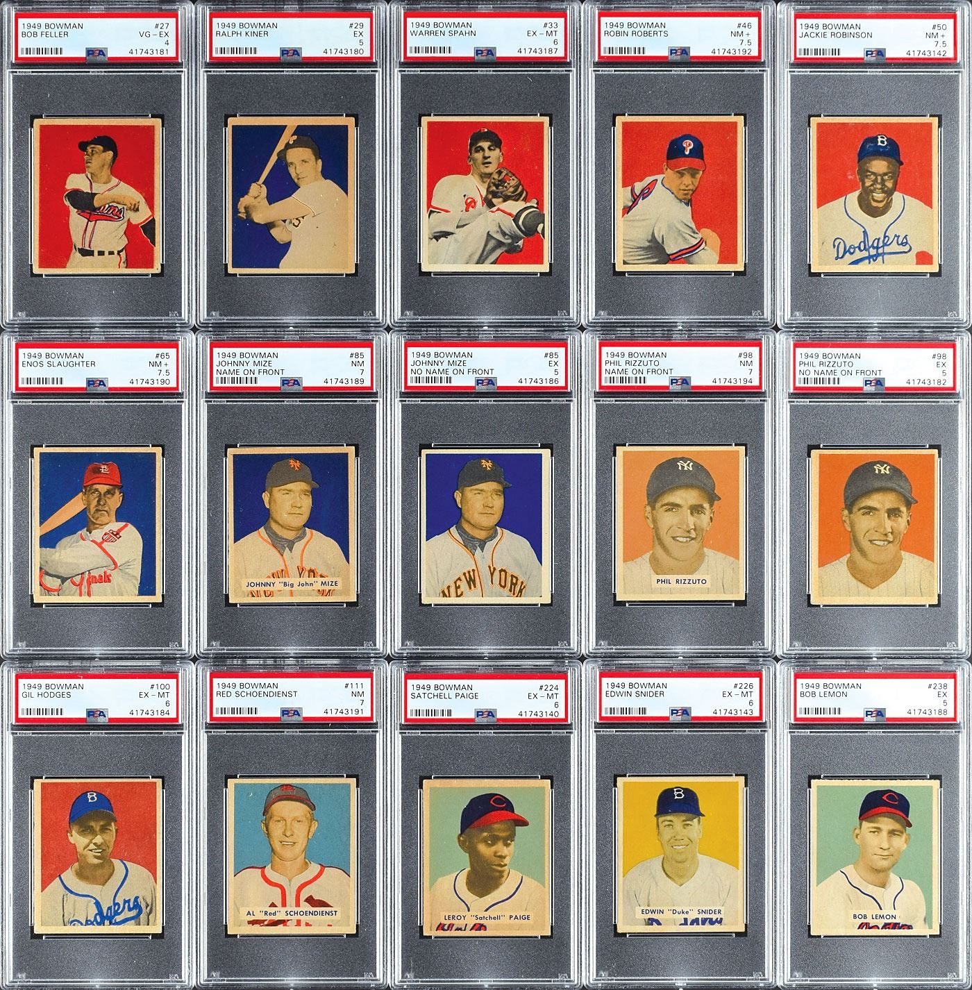 PSA EX-MT 6: 5 cards w/ #33 Spahn, 100 Hodges, 185 Reiser RC, 224 Paige RC and 226 Snider RC.