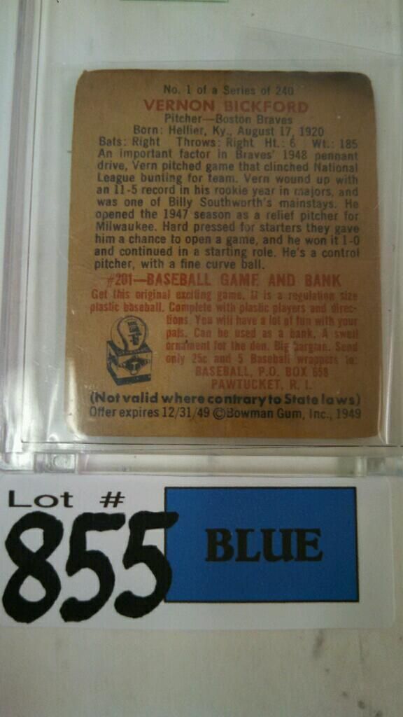 1949 Bowman Vernon Bickford Pitcher Boston Braves