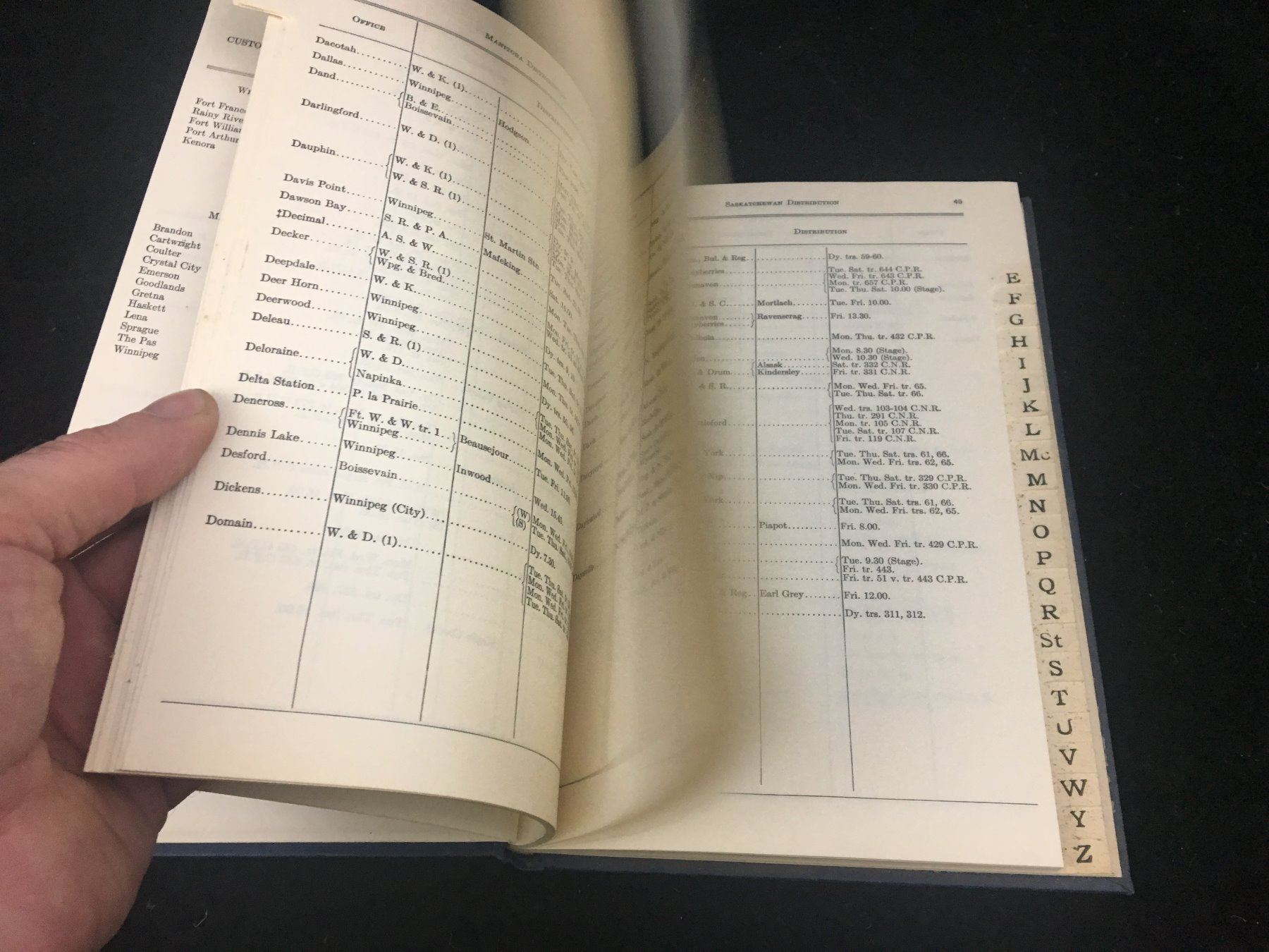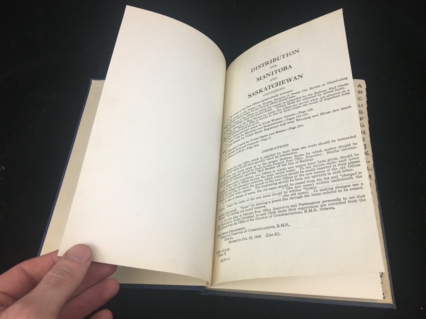 1949 CANADA POST MANITOBA AND SASKATCHEWAN DISTRIBUTION BOOK
