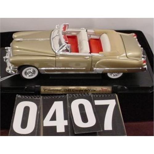 1949 Cadillac Coupe De Ville scale model by Road Signatures on display stand 14" x 5-1/2" x 5" from a seattle collection in very good condition aprox 2Lb .[81]