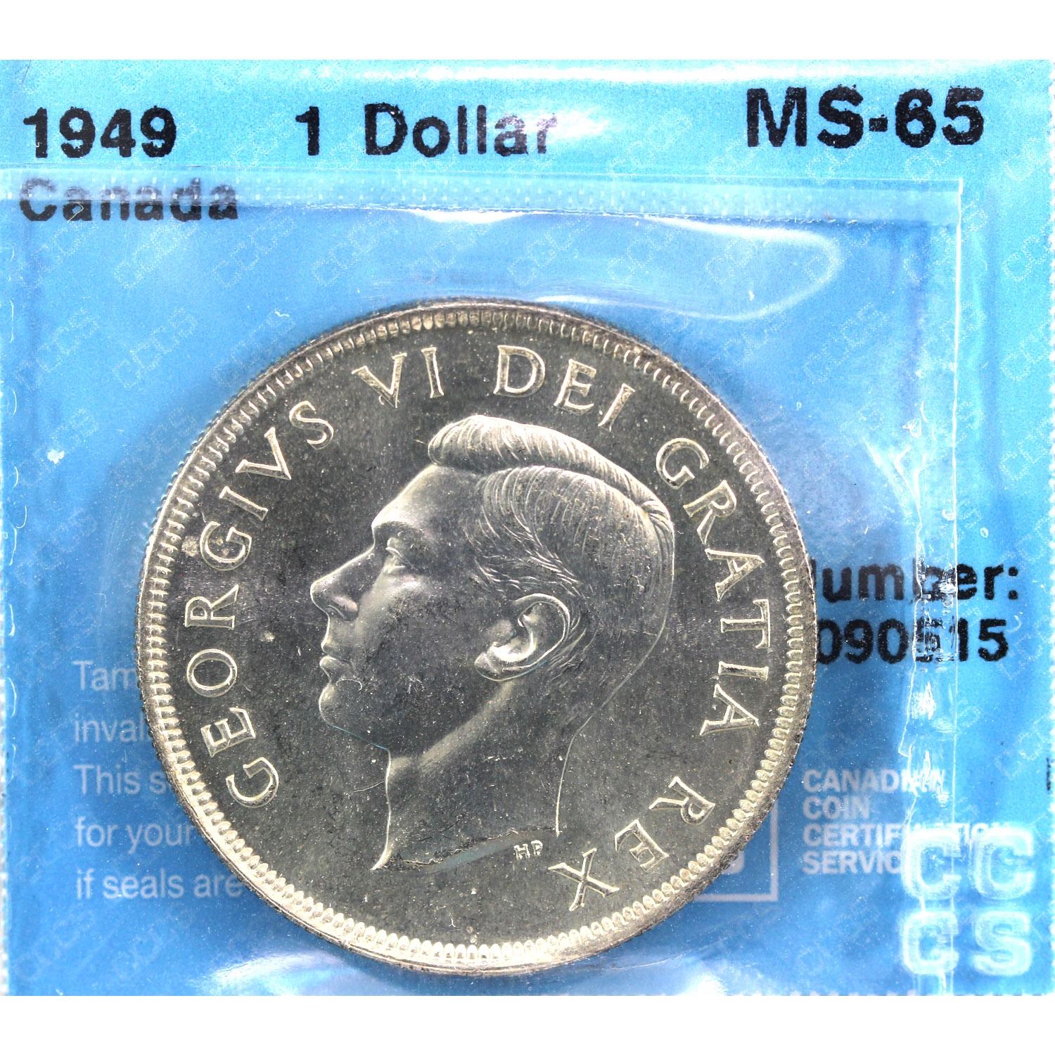 1949 Canada Silver Dollar CCCS Certified MS-65