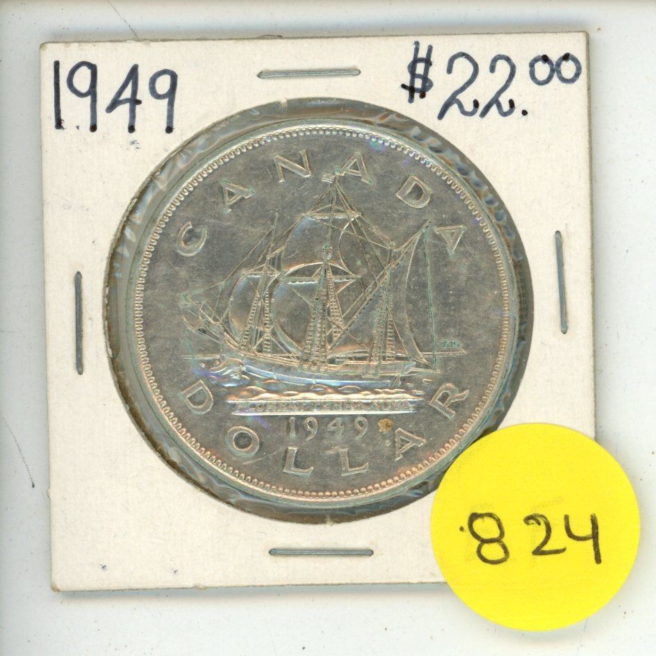 1949 Canada Silver One Dollar Coin.