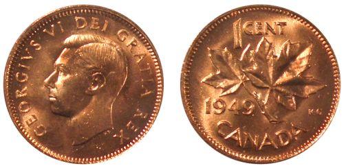 0043 - 1949 Canada Small Cent-ICCS MS64Red