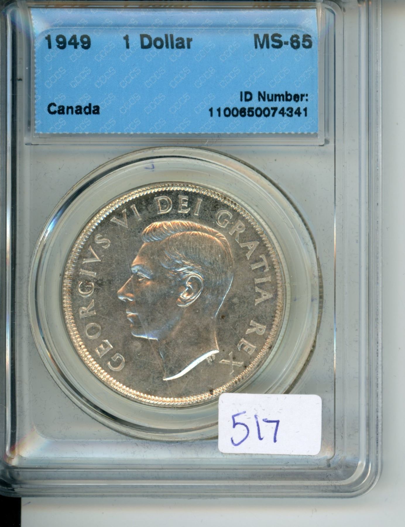 1949 Canadian CCCS Graded 1 Dollar Coin - MS-65