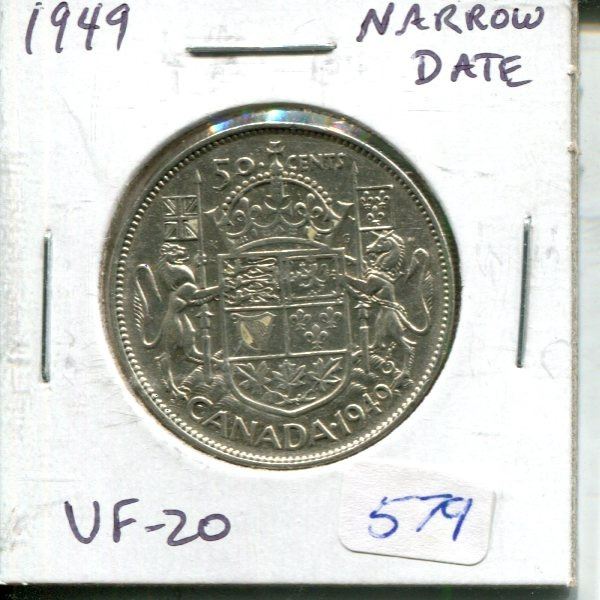 1949 Canadian Narrow Date Silver 50 Cents. VF-20.