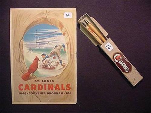 1949 Cardinals Souvenir Progam & Cardinals Baseball Bat Pen & Pencil Set