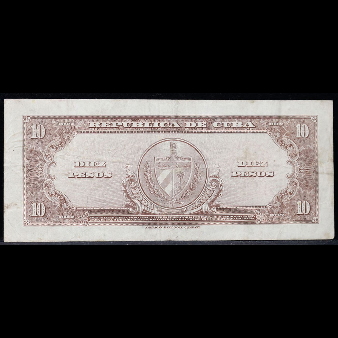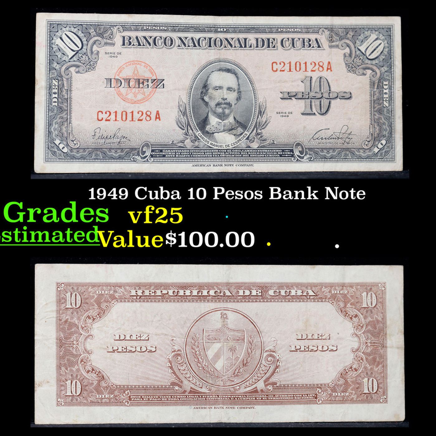 1949 Cuba 10 Pesos Bank Note Grades vf+.