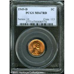 <B>1949-D 1C MS67 Red PCGS.</B></I> Brilliant and Superb Gem examples of the "modern" Lincoln cents represent condition rarities in the higher grades, as illustrated by this issue. While an example of this issue that only grades MS65 may be worth just a few dollars, those in Superb MS67 Red are valued quite highly in the current market. In fact, a similarly graded example of this issue in our 2004 FUN auction realized $2,300. This example is fully brilliant and sharply struck with exceptional orange luster. Population: 30 in 67, 0 finer (1/05). Lot:5553