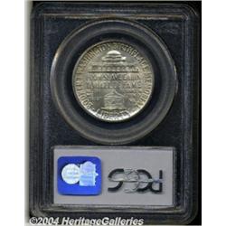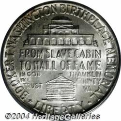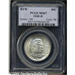 <B>1949-D<50C> Booker T. Washington MS67 PCGS.</B></I> Crisply struck and highly lustrous, with a generally untoned appearance overall. Rarely encountered this nice with hardly any markings on either side. Population: 2 in 67, 0 finer (3/04). <BR><BR><B>Important notice:</B> Heritage usually auctions material at the rate of 200-250 lots per hour. On some occasions eBay Live bid software or the Internet may not be able to keep up with the pace of the auction. We recommend placing a realistic absentee bid now as insurance to avoid disappointment. Occasionally the auctioneer may eliminate or reject an eBay Live bid, and the auctioneer may also reopen a lot after the close of the eBay live bidding (usually because we missed an audience bid), and may reject your bid even if it shows you as the winning bidder. By bidding via eBay Live, you agree that Heritage may award the lot to another bidder at its sole discretion under the circumstances described above or any other reasonable circumstances. Since eBay bids are not shown to us until we open the lot on the floor, we treat those bids just like floor bids. In most cases the floor responds before the eBay bid is presented to us, due to Internet lag time, so for consistency we have made it a policy that floor bids are always considered first over tie eBay live bids. Also please note that all Heritage lots purchased through eBay Live carry a 20% Buyer's Premium. Please make sure you read the Terms and Conditions before you bid. </span></font></tr></table></td></tr></table>