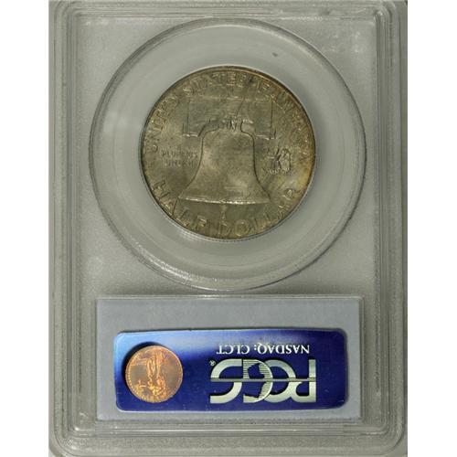 <B>1949-D 50C MS65 Full Bell Lines PCGS.</B></I> Solidly struck and lustrous. Swirling silver-blue and amber-rose patina drapes both sides of this eminently appealing Gem.<BR><BR><b>Shipping:</b> Coins & Currency (<a target="_blank" href="http://www.heritageauctions.com/common/shipping.php">view shipping information</a>)
