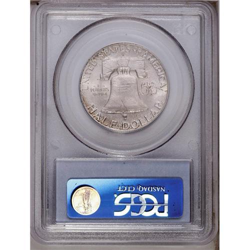 <B>1949-D<50C> MS65 Full Bell Lines PCGS.</B></I> The sharp strike transcends the bell lines to include the lettering on the bell. Lustrous surfaces are overrun with mottled gold-orange toning on the obverse, while the reverse consists more of a pale mauve with gold accents at the borders. A few minute contact marks are noted on the cheek and the bell. Population: 339 in 65 FBL, 16 finer (3/06). <BR><BR><B>Important notice:</B> Heritage usually auctions material at the rate of 200-250 lots per hour. On some occasions eBay Live bid software or the Internet may not be able to keep up with the pace of the auction. We recommend placing a realistic absentee bid now as insurance to avoid disappointment. Occasionally the auctioneer may eliminate or reject an eBay Live bid, and the auctioneer may also reopen a lot after the close of the eBay live bidding (usually because we missed an audience bid), and may reject your bid even if it shows you as the winning bidder. By bidding via eBay Live, you agree that Heritage may award the lot to another bidder at its sole discretion under the circumstances described above or any other reasonable circumstances. Since eBay bids are not shown to us until we open the lot on the floor, we treat those bids just like floor bids. In most cases the floor responds before the eBay bid is presented to us, due to Internet lag time, so for consistency we have made it a policy that floor bids are always considered first over tie eBay live bids. Also please note that all Heritage lots purchased through eBay Live carry a 20% Buyer's Premium. Please make sure you read the Terms and Conditions before you bid. This lot is being auctioned in conjunction with a live floor auction by Heritage Galleries & Auctioneers. All final auction and invoice information will be supplied by Heritage Galleries & Auctioneers, and all other information should be considered preliminary. Lot:3076 <BR><BR><B>Winning Notification and Billing:</B> After the FINAL session in this auction is complete, Heritage will send e-mail and snail mail invoices. This process normally takes several days. All final auction and invoice information will be supplied by Heritage Galleries & Auctioneers, and all other information should be considered preliminary. <BR><BR>This auction will be conducted on a live auction floor and over the Internet through eBay Live. If you choose to place an absentee bid, please take a moment to <font color='#0000ff'><u><a href='http://pages.ebay.com/liveauctions/help/before/laabsentee.html'>learn how eBay Live absentee bidding works</a></u></font><font color='#000000'>