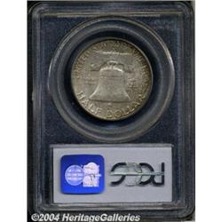 <B>1949-D<50C> MS65 Full Bell Lines PCGS.</B></I> Mottled olive-gray toning covers each side, with blushes of orange and lavender on the obverse. A few small, trivial marks are apparent on Franklin's hair, cheek, and neck. <BR><BR><B>Important notice:</B> Heritage usually auctions material at the rate of 200-250 lots per hour. On some occasions eBay Live bid software or the Internet may not be able to keep up with the pace of the auction. We recommend placing a realistic absentee bid now as insurance to avoid disappointment. Occasionally the auctioneer may eliminate or reject an eBay Live bid, and the auctioneer may also reopen a lot after the close of the eBay live bidding (usually because we missed an audience bid), and may reject your bid even if it shows you as the winning bidder. By bidding via eBay Live, you agree that Heritage may award the lot to another bidder at its sole discretion under the circumstances described above or any other reasonable circumstances. Since eBay bids are not shown to us until we open the lot on the floor, we treat those bids just like floor bids. In most cases the floor responds before the eBay bid is presented to us, due to Internet lag time, so for consistency we have made it a policy that floor bids are always considered first over tie eBay live bids. Also please note that all Heritage lots purchased through eBay Live carry a 20% Buyer's Premium. Please make sure you read the Terms and Conditions before you bid. </span></font></tr></table></td></tr></table>