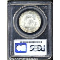 <B>1949-D<50C> MS65 Full Bell Lines PCGS.</B></I> Natural silver-gray surfaces with speckled golden and russet accents in the peripheral areas. A difficult issue as a Gem. <BR><BR><B>Important notice:</B> Heritage usually auctions material at the rate of 200-250 lots per hour. On some occasions eBay Live bid software or the Internet may not be able to keep up with the pace of the auction. We recommend placing a realistic absentee bid now as insurance to avoid disappointment. Occasionally the auctioneer may eliminate or reject an eBay Live bid, and the auctioneer may also reopen a lot after the close of the eBay live bidding (usually because we missed an audience bid), and may reject your bid even if it shows you as the winning bidder. By bidding via eBay Live, you agree that Heritage may award the lot to another bidder at its sole discretion under the circumstances described above or any other reasonable circumstances. Since eBay bids are not shown to us until we open the lot on the floor, we treat those bids just like floor bids. In most cases the floor responds before the eBay bid is presented to us, due to Internet lag time, so for consistency we have made it a policy that floor bids are always considered first over tie eBay live bids. Also please note that all Heritage lots purchased through eBay Live carry a 20% Buyer's Premium. Please make sure you read the Terms and Conditions before you bid. </span></font></tr></table></td></tr></table>