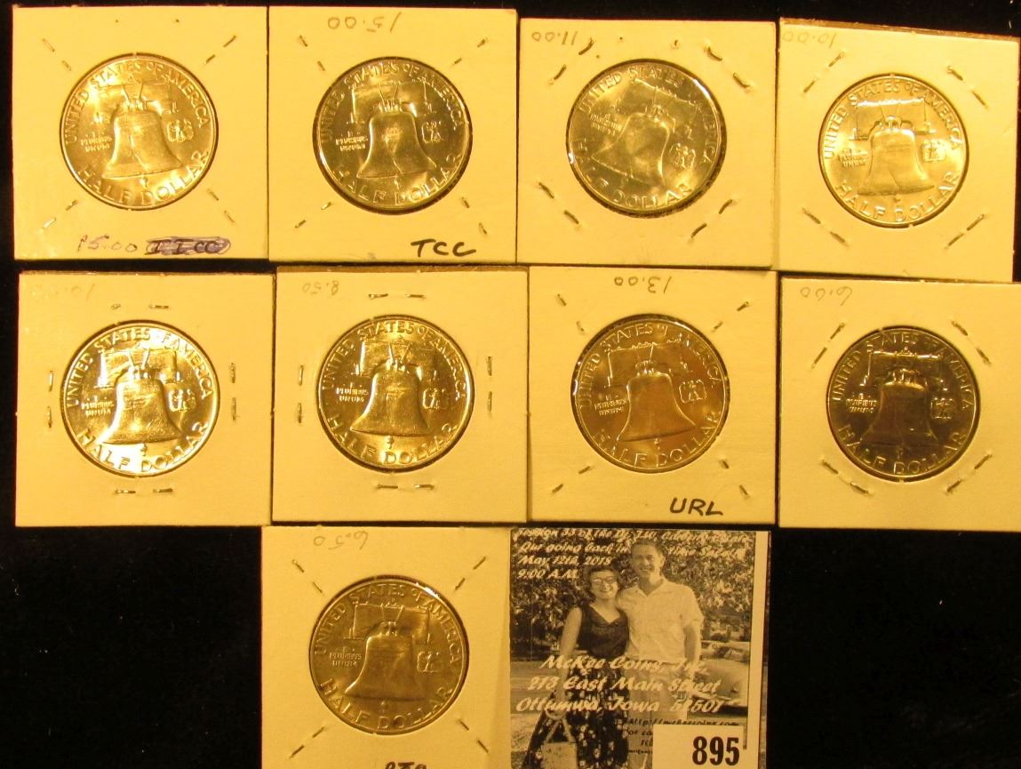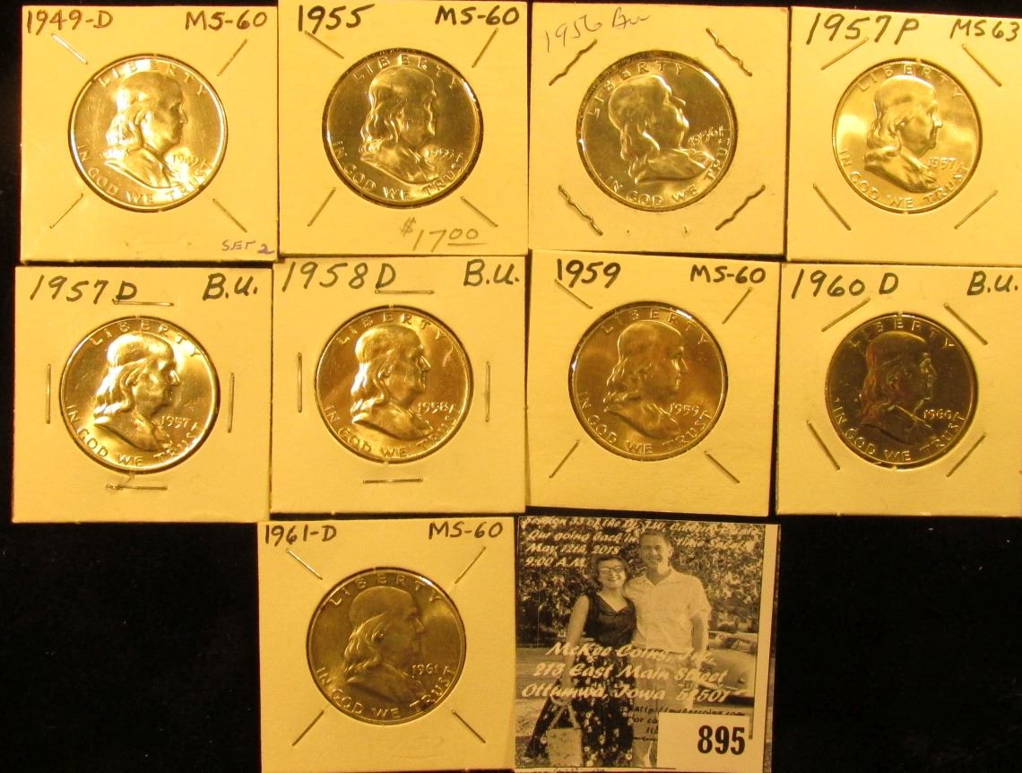 1949 D, 55 P, 56 P, 57 P, D, 58 D, 59 P, 60 D, & 61 D Franklin Half Dollars, all BU.