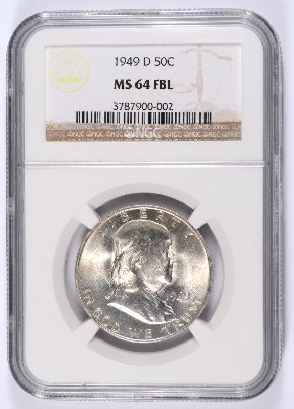 1949-D FRANKLIN HALF DOLLAR, NGC MS-64 FBL RARE!!