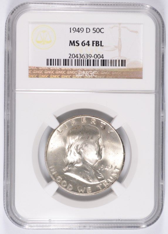 1949-D FRANKLIN HALF DOLLAR, NGC MS-64 FBL RARE!!