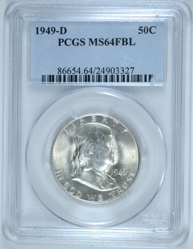 1949-D FRANKLIN HALF DOLLAR, PCGS MS-64 FBL WHITE