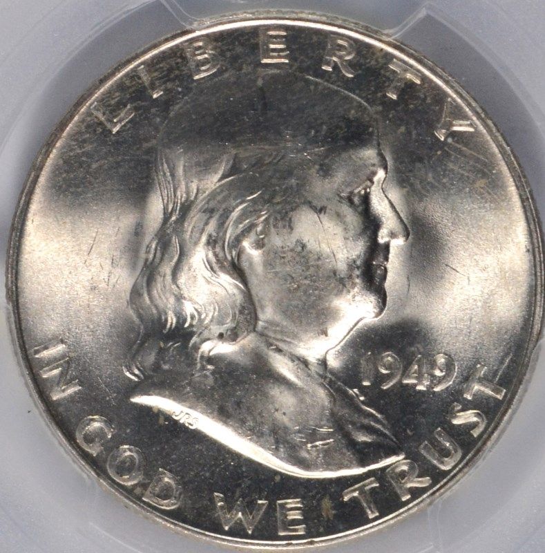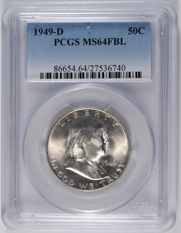 1949-D FRANKLIN HALF DOLLAR, PCGS MS-64 FBL
