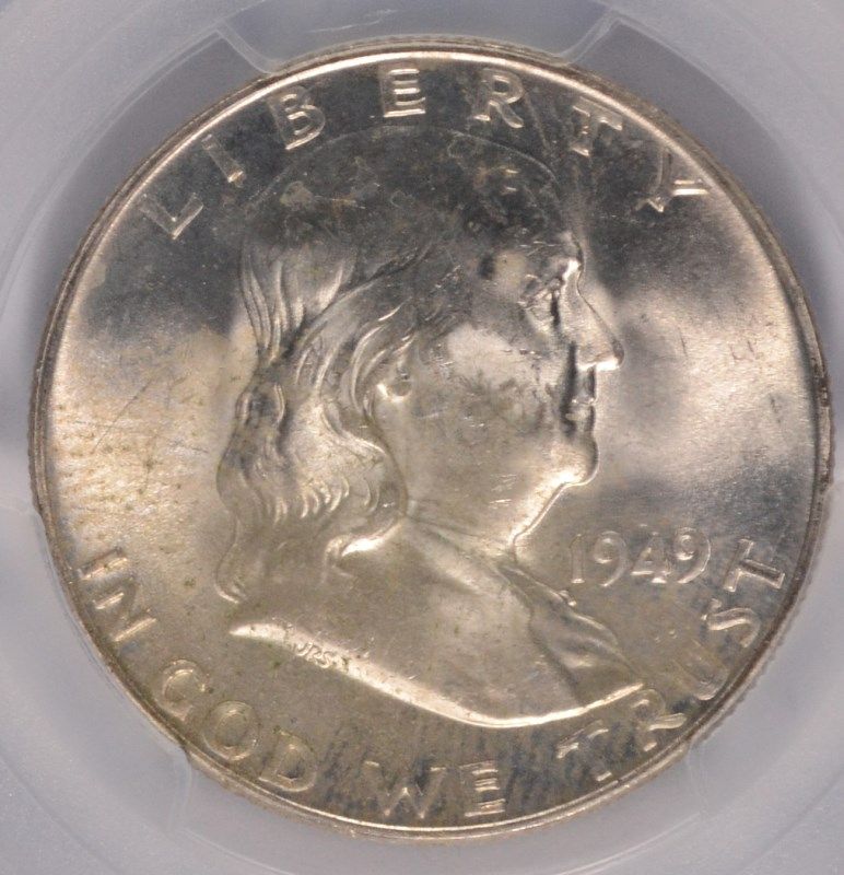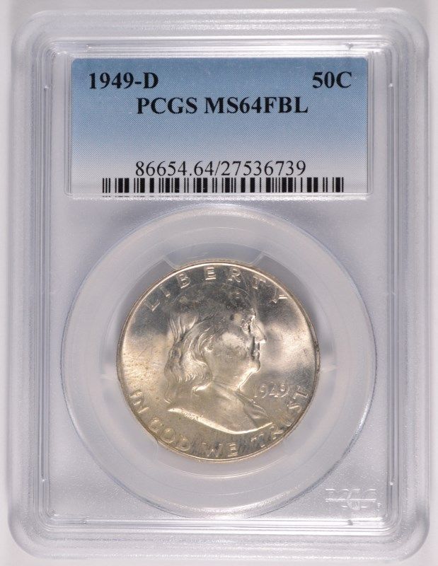 1949-D FRANKLIN HALF DOLLAR, PCGS MS-64 FBL