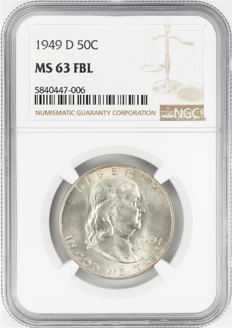 One 1949-D Franklin Half Dollar Coin NGC MS63FBL. NGC Certified.