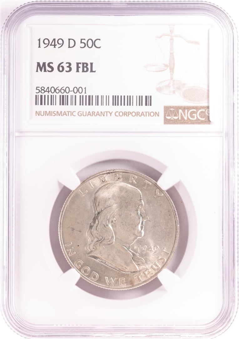 One 1949-D Franklin Half Dollar Coin NGC MS63FBL. NGC Certified.