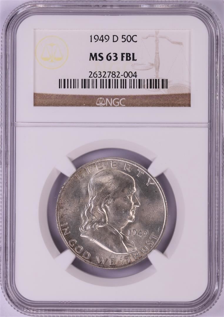One 1949-D Franklin Half Dollar Coin NGC MS63FBL. NGC Certified.