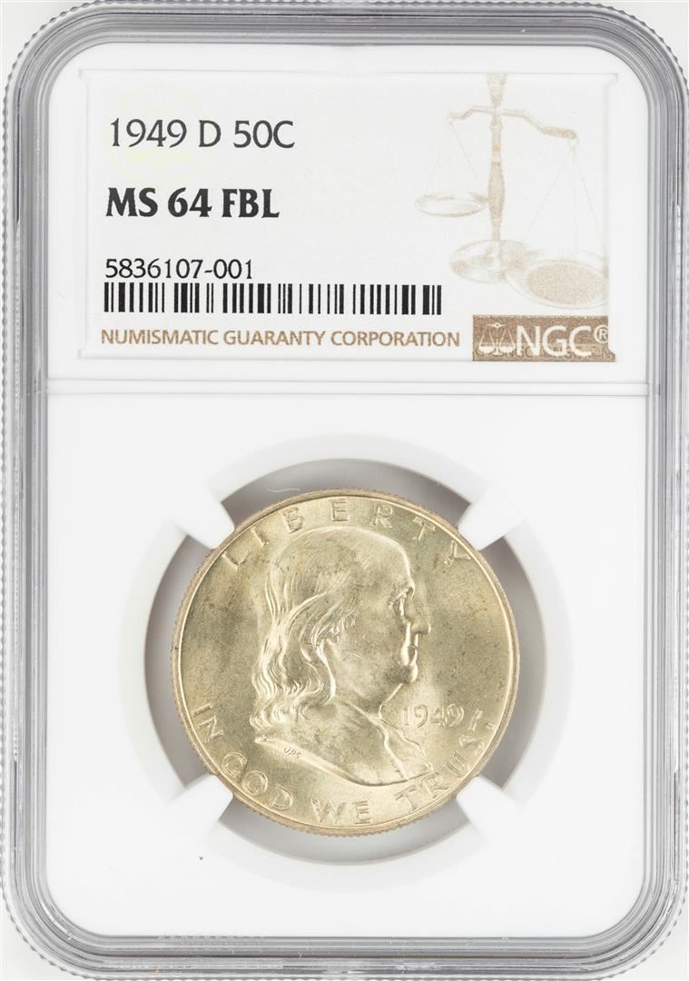 One 1949-D Franklin Half Dollar Coin NGC MS64FBL. NGC Certified.