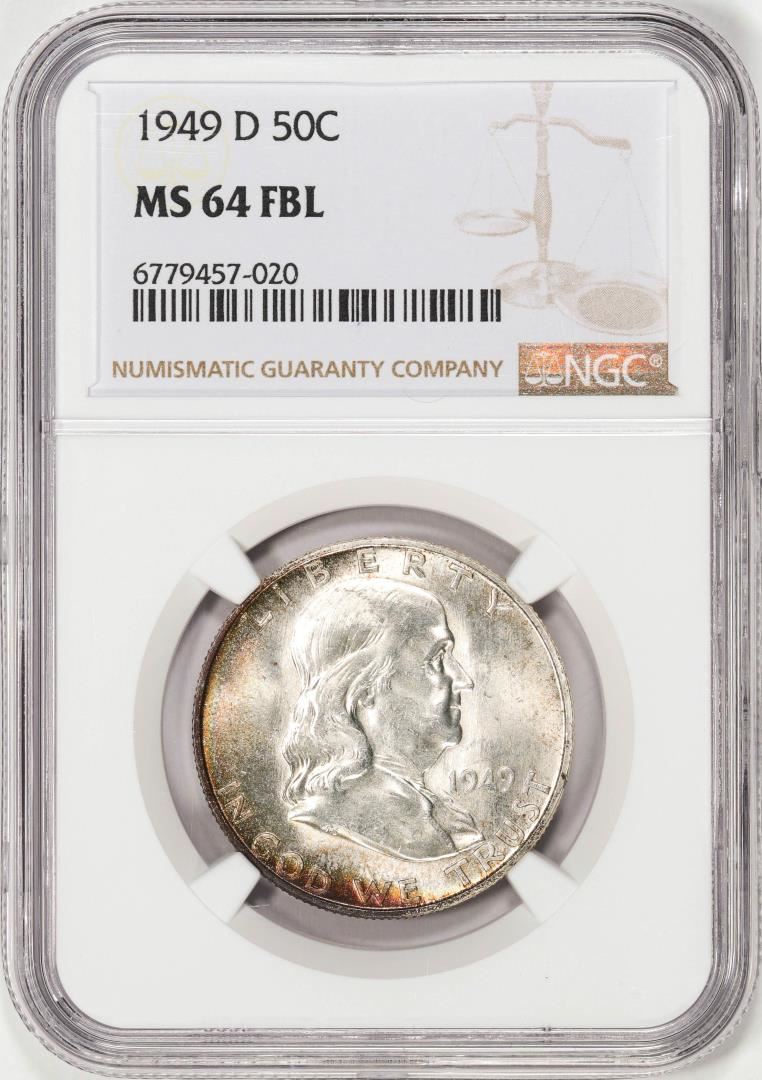One 1949-D Franklin Half Dollar Coin NGC MS64FBL. NGC Certified.